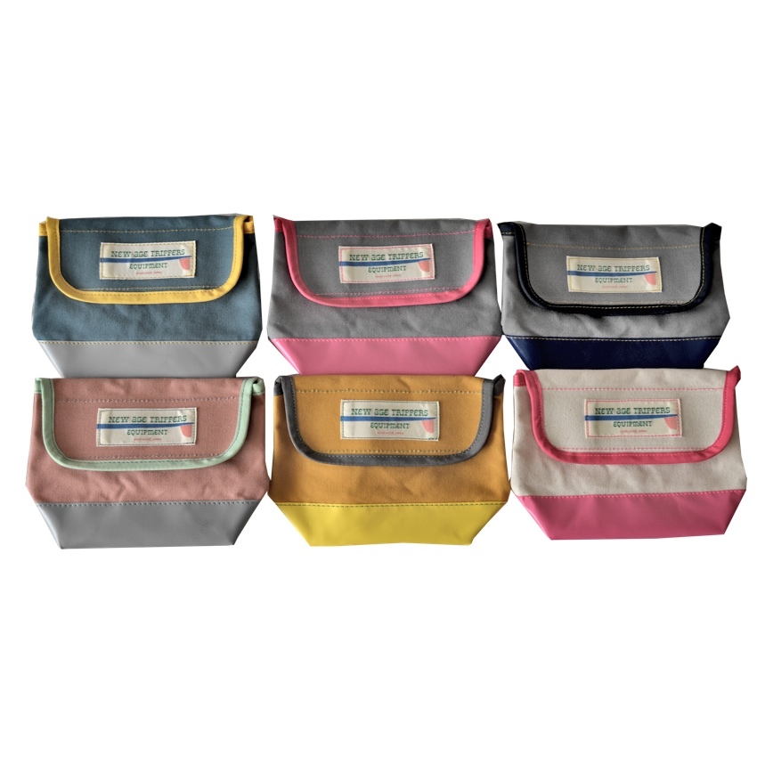 ボディには撥水性のあるパラフィン加工(ロウ引き)を施したキャンパス地、ボトムには防水性の高いターポリン生地を使用。内側にも撥水生地を使用していますので、ビーチや洗面所などで使用しても中が濡れません。内ポケットは4つ。